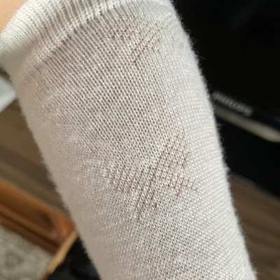 A: The socks are made of 98% recycled polyester and 2% spandex.