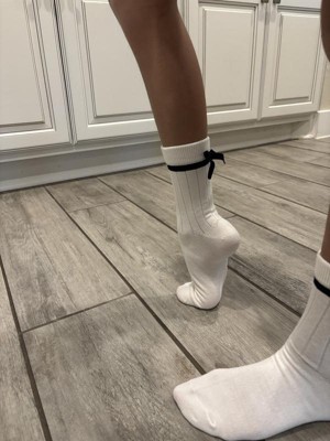 Dress up her look with a touch of festive charm in the Girls' 2pk Velvet Bow Dressy Mid-Crew Socks from art class™. Crafted from soft, lightweight cable fabric, these socks feature delicate velvet bow accents for a classic, dressy finish. The crew height provides versatile coverage, while banded cuffs ensure a secure and comfortable fit that stays in place all day. Perfect for pairing with dress shoes, ballet flats or boots, this 2-pack adds a sweet, polished touch to her holiday and special occasion outfits.