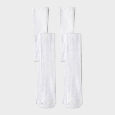Keep your little one comfortable with the Girls' 'Hearts' Cotton Tights from Cat & Jack™ in Ivory. Crafted from a soft blend of cotton, recycled polyester, nylon and spandex, they are breathable and allow easy movement. The opaque knit fabric ensures full coverage, while the high-waisted design with a full waistband elastic provides a secure and comfortable fit. Ideal for pairing with dresses, skirts or layered looks, these tights bring a sweet vibe to your overall look.