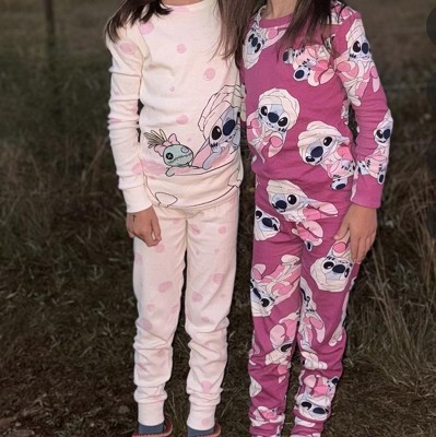 Girls' 4pc Lilo & Stitch Long Sleeve Pajama Set - White