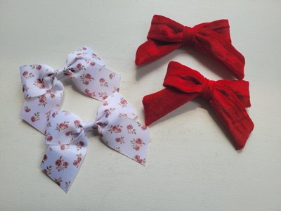 Girls' 4pk Holiday Floral & Velvet Bow Clip Set - Cat & Jack™ Red