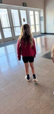 Have your child stand like a tall tree with feet together. Measure a level line around the fullest part of the hips & seat.