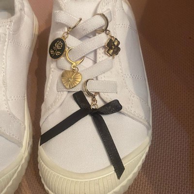 [This review was collected as part of a promotion.] These gold shoe charms are adorable on my daughters baby blue Converse high tops. I was worried that they would come off while she walked, but surprisingly, they stayed put. She loves them and wants to check out other styles that Target has to offer. I would definitely recommend them for dressing up everyday sneakers. They are very affordable so if one comes off, it’s no big deal. I received an incentive to write this review.