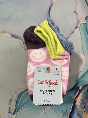 Add a fun and colorful touch to your kiddo’s everyday outfits with the Girls' 7pk Flowers/Hearts No Show Socks - Cat & Jack™ Purple. Each pair features playful flowers and hearts in shades of purple, making them easy to mix and match. The no show style stays hidden inside shoes, perfect for sneakers or slip-ons. Made from a lightweight knit fabric blend, these socks feel soft and breathable, keeping little feet comfy through school days, playtime, and everything in between.