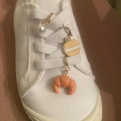 [This review was collected as part of a promotion.] These shoe charms are really cute. This set comes with 2 satin pink laces that are a soft and feminine cotton candy pink color as well as six unique and whimsical charms. It has a little croissant,a macaroon cookie, a little pair of ballet shoes that are each embedded with 5 little bling rhinestones, a golden bow, a pearl heart charm and a solitare pearl dangle. My daughter loves these so much! This set is absolutely perfect for her as a dancer who loves Paris everything. I received an incentive to write this review.