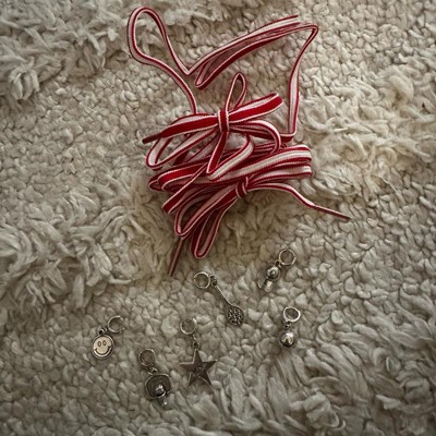 [This review was collected as part of a promotion.] I bought this six charm set for my daughter to use on her sneakers. She loved this set because it has a basketball hoop charm and she loves playing basketball. The other five charms are a smiley face, a baseball-style hat, a star, a soccer ball, and a tennis racket. They are all silver. It also came with a pair of red & white shoe laces but she declined to use them because she didn't like how they matched with her yellow shoes. The charms are cute. My daughter does like them a lot. They give her sneakers some pizazz. They'd look nice on a purse or backpack zipper also. However, I do not think the quality is the best. They were kind of difficult to open. You just pull the ring apart and snap them back together after adding them to your shoelace, bag, etc. Sounds simple but it wasn't easy for all six charms. A couple were extremely difficult to pull apart. I hurt my finger a bit opening the smiley face one. I honestly don't expect them to hold up long hanging from her shoe. I received an incentive to write this review.