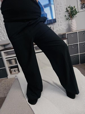 Because I'm 5'2" and slim, I often buy my pants from the girls or boys section at Target. These pants are no exception. I ordered the XXL in the black and they are quite comfortable but hit well below my ankles. However, when paired with sneakers the pants definitely do not drag on the ground. The feel of the material is a bit dressier than I expected the pants can still have a casual look when paired with a t-shirt. The pants are elastic waistband with outter drawstring, side pockets, but no pack pockets. And Target naming the pants "light wide leg pants" is a correct description -- the black pants are definitley not see through but they are lightweight, definitely pants for fall and spring. I think a child would be too cold if they were wearing them outside waiting for the bus to pick them up for school or at recess. (I definitely got a deal when they were on sale for $15.)