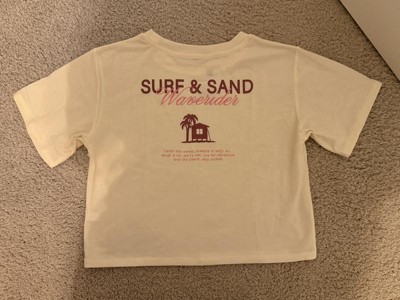 This surf and sand shirt is so cute. I love that the design is in the front and back of the shirt. The box style of the shirt makes it a loose fit. The material is soft and thin. The thinness of the shirt is not a bad thing, it makes the shirt light weight. It’s breezy and something to wear at the beach, working out, or simply everyday. I am very impressed with this design and wish it was available in adult sizes.