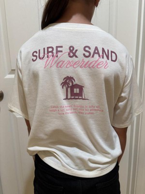 My daughter loves this shirt! It is so soft! The colors and graphics are fun for the Summer season or vacation. The phrases on the back are fun and add a unique touch to the shirt. My daughter has a medium on and it fits perfectly. Quality of the shirt is wonderful and holds up after multiple washes and there has been no shrinkage. Definitely a must have for comfy loungewear or every day outfits.