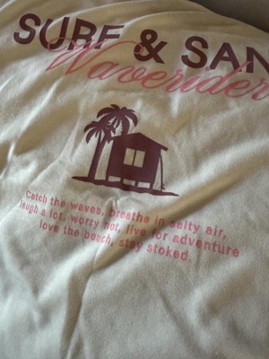 This surf and sand shirt is so cute. I love that the design is in the front and back of the shirt. The box style of the shirt makes it a loose fit. The material is soft and thin. The thinness of the shirt is not a bad thing, it makes the shirt light weight. It’s breezy and something to wear at the beach, working out, or simply everyday. I am very impressed with this design and wish it was available in adult sizes.