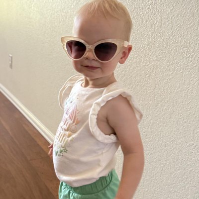 [This review was collected as part of a promotion.] My 11 year old has a very small face and needed sunglasses for our upcoming beach trip. We found these adorable sun glasses by cat and Jack and were excited to give them a try. She really liked style that it has the larger sun glass frame. They also have 100% uv protection from the sun so they definitely will protect her eyes while at the beach. The color of the frames are neutral and had a fun shape! I received an incentive to write this review.