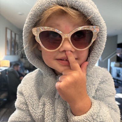 [This review was collected as part of a promotion.] My daughter absolutely loved these stylish kids sunglasses. The color is really cute it’s almost like an abalone/opalesect color . The shape is adorable and I love that they’re dark and polarized eyes to keep her eyes safe in the sun. The cost is affordable and they fit her great. For reference She’s three years old. These are absolutely her new favorite sunglasses I received an incentive to write this review.