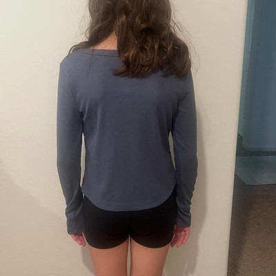 This top is soo cute however it’s not child appropriate. My daughter is 5 and the xs was too cropped so I opted for a size small which fit better. I noticed the neck is very wide, so when she was moving around I could see her entire chest and belly area. Because of this I am returning. Though the style is cute I feel the neck cut is way too wide and the also made it very cropped. So disappointed bc it looked really cute on her.