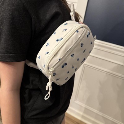 [This review was collected as part of a promotion.] Go ahead and let your preteen and younger daughters grab this amazing fanny pack. As a mom, I have a more expensive brand and my daughter always wants to use mine. When we found this one we just had to have it for her. It is all white with super cute flowers throughout the print. It easily goes across your waist or across the body. I can store all of your daily items, such as phone, Chapstick, and money. I received an incentive to write this review.