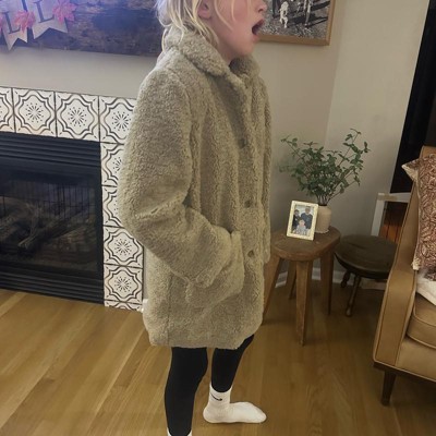 [This review was collected as part of a promotion.] I absolutely love this fluffy coat. I love how it almost is like a sweater however it is also like a jacket. Definitely not worthy for Midwestern snow but great for fall or a chilly day. It is not lined inside. It is simply fleece on both ends. However, the buttons are super cute and easily able to do undo. My daughter is 11 and 4’9” tall for reference and this is a size large, her typical size or a size 10, and it fits very well.