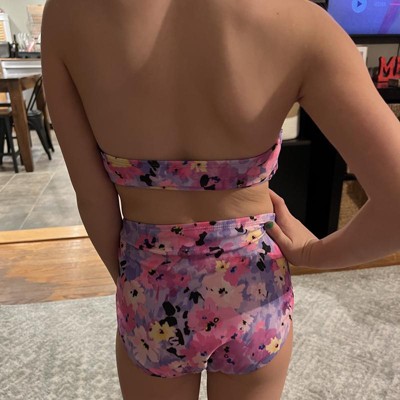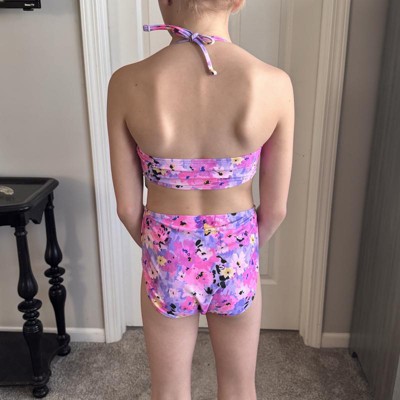 [This review was collected as part of a promotion.] This is a really pretty swimsuit. I really love the bouquet pink floral print. My daughter is wearing the size Small 6 to 7 as she is slim and tall at 4ft 7. It fits her well in the body and the side cut out detail looks neat. The halter straps need to be about 2 inches longer on each side as there was not much length to tie a bow. The suit is perfect for the Spring and Summer ahead. I received an incentive to write this review.