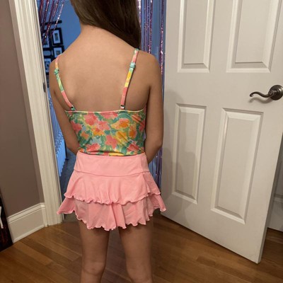 Dress up your kid in sweet swim style with the Floral Printed One-Piece Swimsuit Set from Cat & Jack™. This swimsuit set includes a floral-print swimsuit and a pink ruffled swim skirt for a coordinated look, and the swimsuit comes with adjustable straps and keyhole detailing at the front to elevate the look. Made of soft and stretchy fabric with full lining, the pieces offer comfort in and out of the water. Providing classic coverage, this printed swimsuit set is also UPF 50+ rated to help keep them shielded from harmful UV rays.