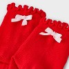Keep their feet warm in sweet style with these 2-Pack Heart Socks with Bow from Cat & Jack™. This pack includes two pairs of ankle socks — one with a bow-tie accent and the other with red heart print. Both pairs are made from recycled polyester-spandex blend fabric for comfortable wear, while the ruffle ribbed cuffs offer a snug fit.
