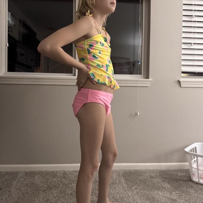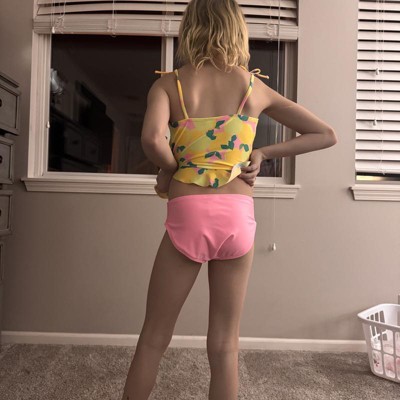 [This review was collected as part of a promotion.] I feel like this swimsuit is finally a huge win for a picky tween. The second she took it out of the bag she said whoa. This is actually a cute one. She really likes the lemons that are on it and the mix of the paler yellow with the brighter pink. I have ordered her size 10 or 12 and she typically would wear an eight or 10 but this is all that it comes in and it seems to fit well. I especially liked how the top was longer and does not show her her whole stomach either. Appropriate for a girl of a younger age. I received an incentive to write this review.