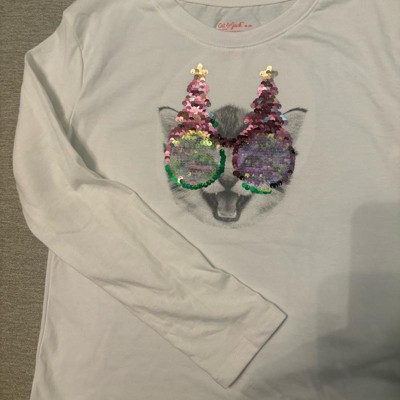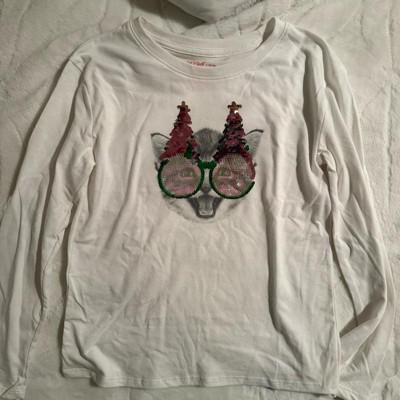 Girls' Long Sleeve 'Christmas Cat' Flip Sequin T-Shirt - Cat & Jack™ Cream M