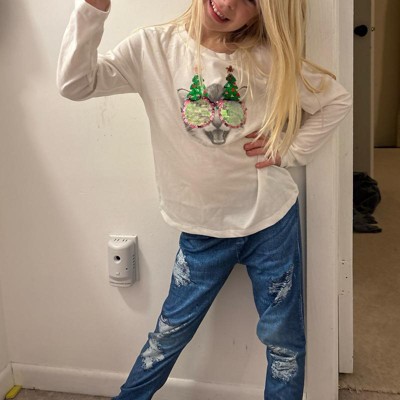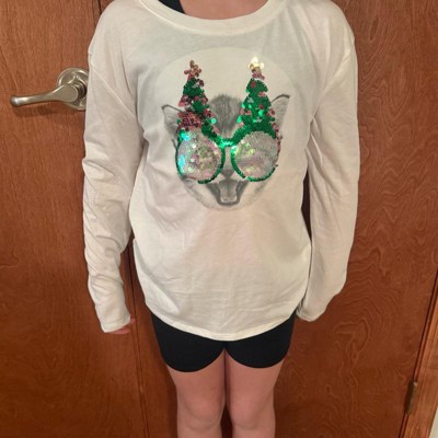[This review was collected as part of a promotion.] The Cat & Jack Flip Sequin Christmas Cat Long Sleeve Shirt brings festive fun and sparkle to the holiday season. Made from soft, comfortable fabric, it’s perfect for keeping kids cozy while they celebrate. The playful cat graphic with flip sequins adds an interactive touch that kids will love, letting them change up the look with a simple swipe. Bright, cheerful, and full of holiday spirit, this shirt pairs perfectly with jeans or leggings for a cute and comfy Christmas outfit that’s sure to stand out.