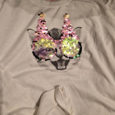 [This review was collected as part of a promotion.] We love love love this shirt! It is so cute, and covers everything my daughter likes. She likes kitties, Christmas, and clothes with sequin. It's fun that it looks different with how the sequins are flipped. My daughter can wear a 4t or 5t, I bought a 5t in this and it fit her well, so I'd say it is true to size. The only thing that could make this shirt better is that if it was offered in different colors.