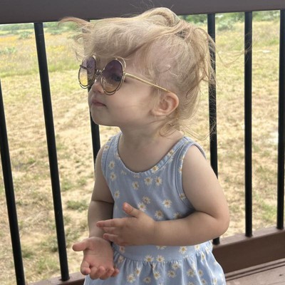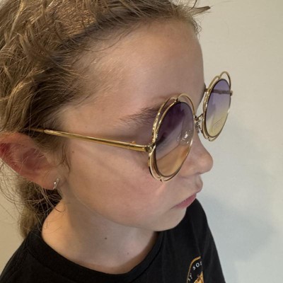 Brighten up your day with the Girls' Metal Flowers Sunglasses - art class™ Purple/Gold. These stylish sunglasses feature a charming floral design on the metal frames, adding a fun touch to any outfit. The tinted lenses provide UV protection, keeping your eyes safe while enjoying the sunshine. Perfect for outdoor adventures or just looking cool.