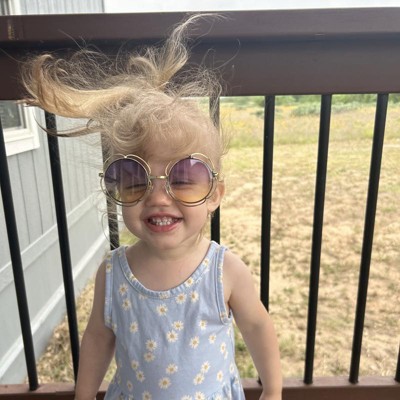[This review was collected as part of a promotion.] My two year old is obsessed with sunglasses and is always messing with my sunglasses. I bought her this pair so that she can have her very own. They are smaller than adult sunglasses but still a little large for a toddler. They seem true to size for an 8-10 year old child. These do stay on my toddler’s head better than my adult sunglasses do but she will still need to grow into them. The flower design is SO cute and these are so stylish for any young girl. I received an incentive to write this review.
