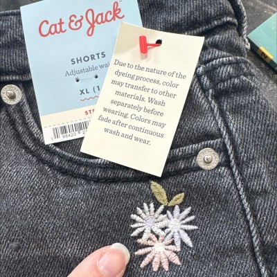 I got these shorts for my little one and they are perfect. She loves the light wash color and the material. She states they are super comfortable. The shorts have a super cute flower embroidery on the cuffed part of the shorts. These shorts are easy to pair with a variety of tops. I got them in her current size and they fit her perfectly. I have washed and dried these shorts a few times already and they continue to look as good as new. If you are looking for super cute stylish denim shorts, I highly recommend these ones by Cat and Jack!
