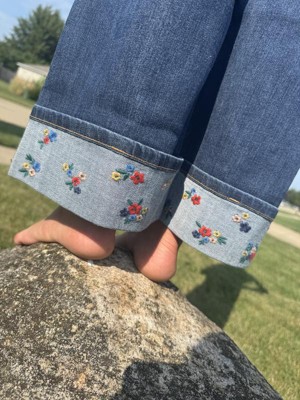 Girls' Mid-Rise Floral Embroidered Cuff Wide Leg Jeans - Cat & Jack™ Dark Wash - 2 of 4Girls' Mid-Rise Floral Embroidered Cuff Wide Leg Jeans - Cat & Jack™ Dark Wash - 3 of 4Girls' Mid-Rise Floral Embroidered Cuff Wide Leg Jeans - Cat & Jack™ Dark Wash - 4 of 4
