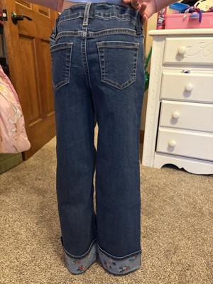 Girls' Mid-Rise Floral Embroidered Cuff Wide Leg Jeans - Cat & Jack™ Dark Wash 4