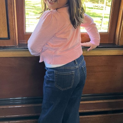 These pants are so adorable! But the best part is that they have a stretch to them, they are not a stiff jean which is great for little girls. I wish they would make more like this. It makes more comfortable for girls to move and play in and they are a mid rise so she doesn’t have to worry about them crawling down when she sits at school.