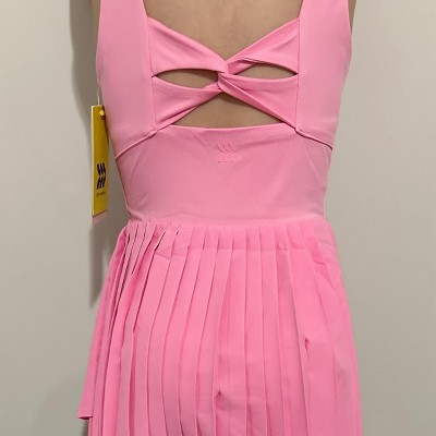• Must-have features: moisture wicking, quick drying, sleeveless design, V neckline, twist-detail back with cutouts, comfy shoulder straps, pleated skirt, at-knee length, regular fit, built-in shorts, pullover style