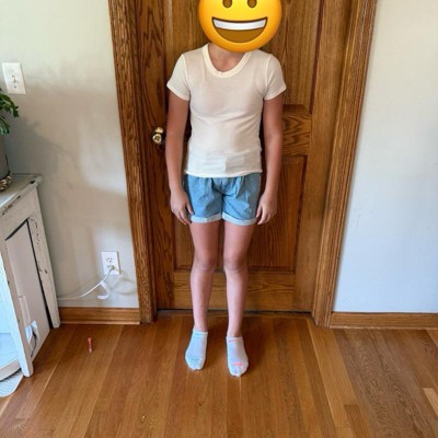 [This review was collected as part of a promotion.] These girls, jean shorts have cleats in the front and also have the bottom of the shorts rolled up. These have an elastic waistband and pockets on the backside of the shorts. My daughter is 11 years old and has these in a size extra large. She really wasn’t a fan of the style because she said they looked like “Mom” shorts. These are definitely comfortable to wear and have some flexibility to the material. I received an incentive to write this review.