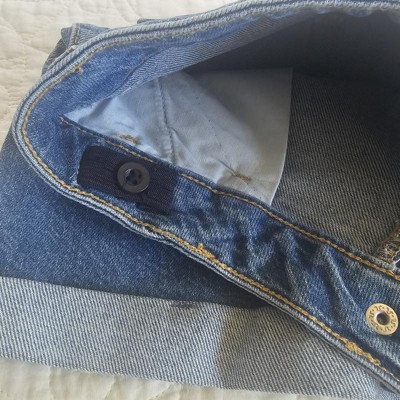 • A: They include an adjustable waistband with a fly snap and zipper for a customizable fit.