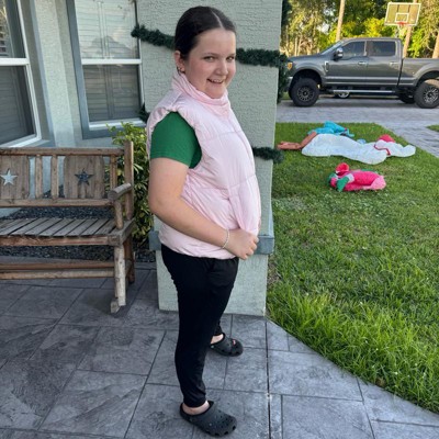 [This review was collected as part of a promotion.] This puffer vest will be great for those cool Florida days. My daughter selected the pink color option as it’s her favorite. She can wear this all day long to school where she can zip it up when outside and unzipped while inside. The overall length is good. My tween daughter is wearing a size XXL and it fits as expected. She paired it with a short sleeve shirt underneath and some leggings.