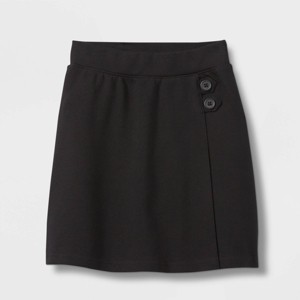 Bring style and coverage to your child's school wear with this Pull-On Uniform Knit Skort from Cat & Jack™. Fashioned in a solid hue, this knit uniform skort features a wrap style with a double-button detail at the front, and comes with built-in shorts underneath for added coverage and confident wear. The pull-on waist makes dressing simple and hassle-free, while the stretch material provides more room for easy movement. They can pair them with uniform polo tees and button-down shirts for versatile styling.
