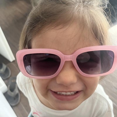 Brighten up your day with the Girls' Rectangle Sunglasses - art class™ Pink. These stylish sunglasses feature a rectangular design on the pink frames, adding a fun touch to any outfit. The tinted lenses provide UV protection, keeping your eyes safe while enjoying the sunshine. Perfect for outdoor adventures or just looking cool.