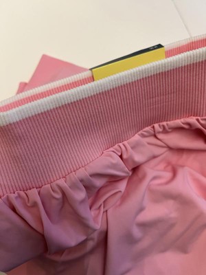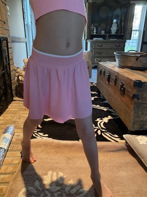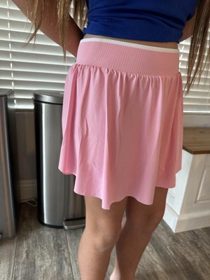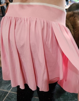 Love this flowy cute pink athletic skirt! Attached shorts underneath makes it perfect for tennis, pickleball and summer play. Super thing skirt with a slit/overlay on one side. One pocket on shorts - left side. My daughter loves it!