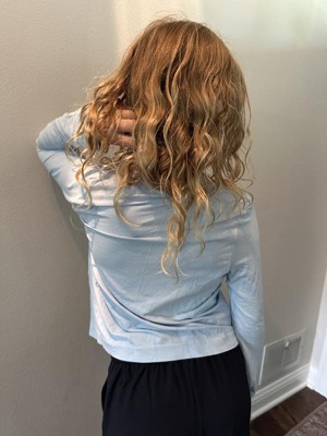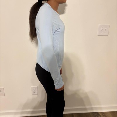 [This review was collected as part of a promotion.] This is a beautiful long sleeve lightweight shirt in a beautiful blue color. My daughter is wearing a size extra extra large and this shirt definitely runs to us. To use as a size reference. My daughter is 5’3” tall and weighs approximately 125 pounds. She loves that this shirt is lightweight, comfortable and most of all breathable. Perfect for every day wear or also for working out. I received an incentive to write this review.