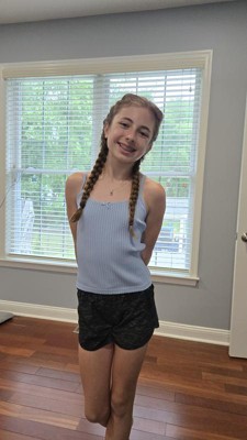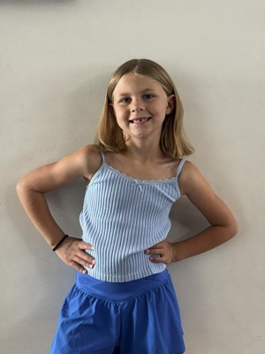 [This review was collected as part of a promotion.] My daughter is 4’4” and 60lbs so I ordered a medium in this camisole top. It fit her so well and it has a seamless type of material to it with a nice lacy trim and bow in the center. She is obsessed with this tank to the point where I’ve already ordered it in 2 different colors as well. The material feels thick enough that she doesn’t need to wear anything underneath and will be cute under a sweater or button down I received an incentive to write this review.