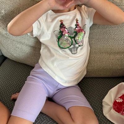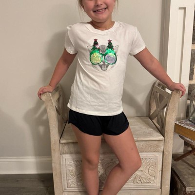 Keep your child Christmas ready with the Short-Sleeve 'Christmas Cat' Flip Sequin T-Shirt from Cat & Jack™. This cream T-shirt features a cat wearing sunglasses adorned with Christmas trees for a festive vibe, and the sunglasses and trees are designed with flip sequins for glam touch that's perfect for the celebrations. Made of cotton-recycled polyester blend fabric in a loose-fit cut for comfortable wear, this flip sequin T-shirt makes a perfect holiday gift for your kid.