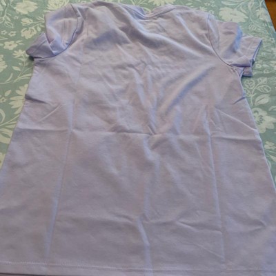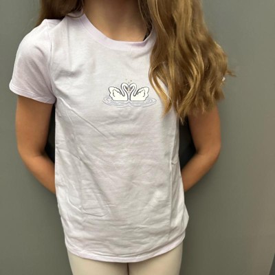 [This review was collected as part of a promotion.] Is a beautiful light purple T-shirt for girls it is a size medium and perfect for my seven year-old. I love the swans in the front and the little glitter hearts that add a new dimension to the shirt. The cotton is so soft and the short sleeve shirt, it has a large arm hole, so your child can move around easily. This is a full size T-shirt, so it rides a little lower than the waist, which is great to be paired with shorts or jeans