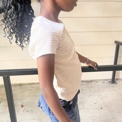 Girls' Short Sleeve Crew Neck Striped Baby T-Shirt - art class™ Khaki S: Lightweight Cotton-Spandex Blend, Machine Washable