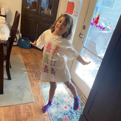 [This review was collected as part of a promotion.] I struggled when buying these as they were labeled oversized and I’ve never purchased an oversized shirt for my 6 year old. She is between a medium and large when it comes to shirts, depending on the brand. This makes shopping for shirts a bit tricky. I thought maybe being oversized would be a good thing. My daughter is 44 inches tall and 44 lbs, which is in on the taller side for her age. She reallt doesn’t like her tummy to show, even when she is stretching so all her shirts need to be a bit bigger. I picked the gummy bear pattern because she loves candy, what kid doesn’t. She was super excited for the patter and bright colors. She really liked the fit because it covered her shorts. I don’t know if I love that or not. While the shirt seems a bit big because she is in between sizes we plan to keep it and wear it with her baggy jeans as she prefers her shirts bigger for sensory reasons. I received an incentive to write this review.