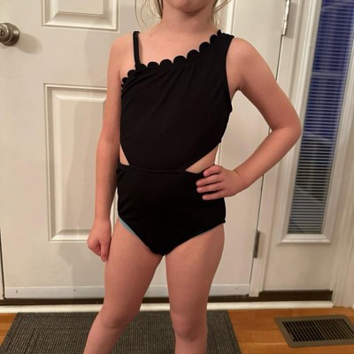 They'll love dressing up for the beach or pool in charming style with this Solid One-Piece Swimsuit from art class™. This one-piece swimsuit features scalloped detailing on one shoulder, along with side cutouts for a charming look. Plus, the removable, adjustable strap ensures a comfortable and secure fit. Tailored from soft recycled polyester pique fabric with added spandex for stretchy comfort in and out of the water, this full-coverage swimsuit helps keep them shielded from harmful UV rays with the UPF 50+ rated material.