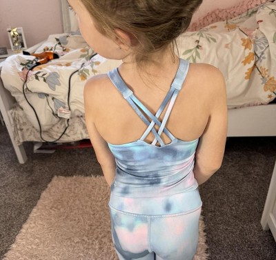 My 11 yr old loves this tank. She has it in 3 colors and loves wearing them. They’re comfy and easy to wear. She loves the shelf bra and pads so that she doesn’t have to worry about wearing another bra.