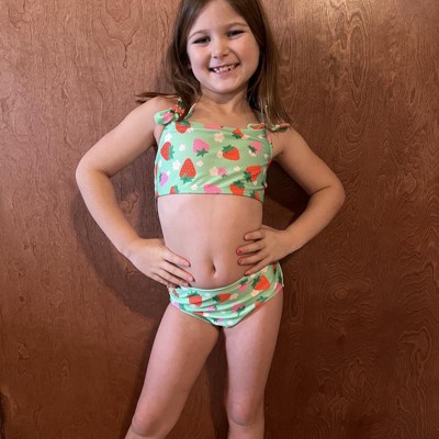 [This review was collected as part of a promotion.] My daughter is obsessed with strawberries and was so excited to try this two-piece bikini set on. We really like this set as the bottoms have way more coverage than other swimsuits and she felt comfortable in it. She is almost 8 years old and typically wears a size 7 or eight in this fit perfectly with room to grow. We will definitely be keeping this one and wearing it this summer. I received an incentive to write this review.
