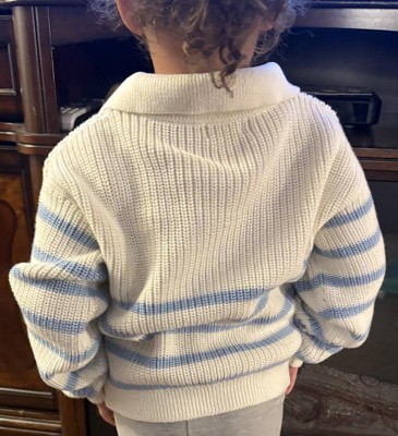 Keep them looking and feeling their best wherever you go in this Collar Sweater from Cat & Jack™. Made from cotton-recycled polyester blend fabric, this long-sleeve sweater provides warm comfort. It's fashioned with a polo collar and features ribbed cuffs and hem for a snug fit, and the below-waist length allows for easy layering.