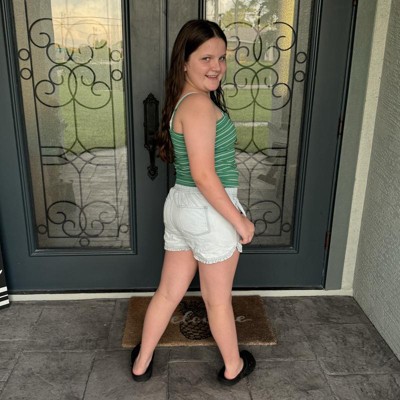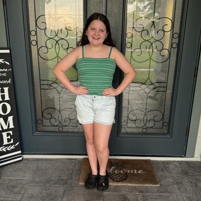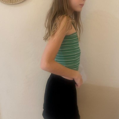 [This review was collected as part of a promotion.] This top reminds my child of a tube top with straps. My child chose the green color option and it is nice bold color that stands out with the light wash denim shorts my child paired with the top. The size XL 14 fits as expected. My child can add a cardigan to be able to wear this top to school. Otherwise, this is a great top to hang with friends. The material has stretch so it has a snug fit on my child. The length is just long enough to cover the full belly. This is a good addition for the wardrobe of the tween age. I received an incentive to write this review.
